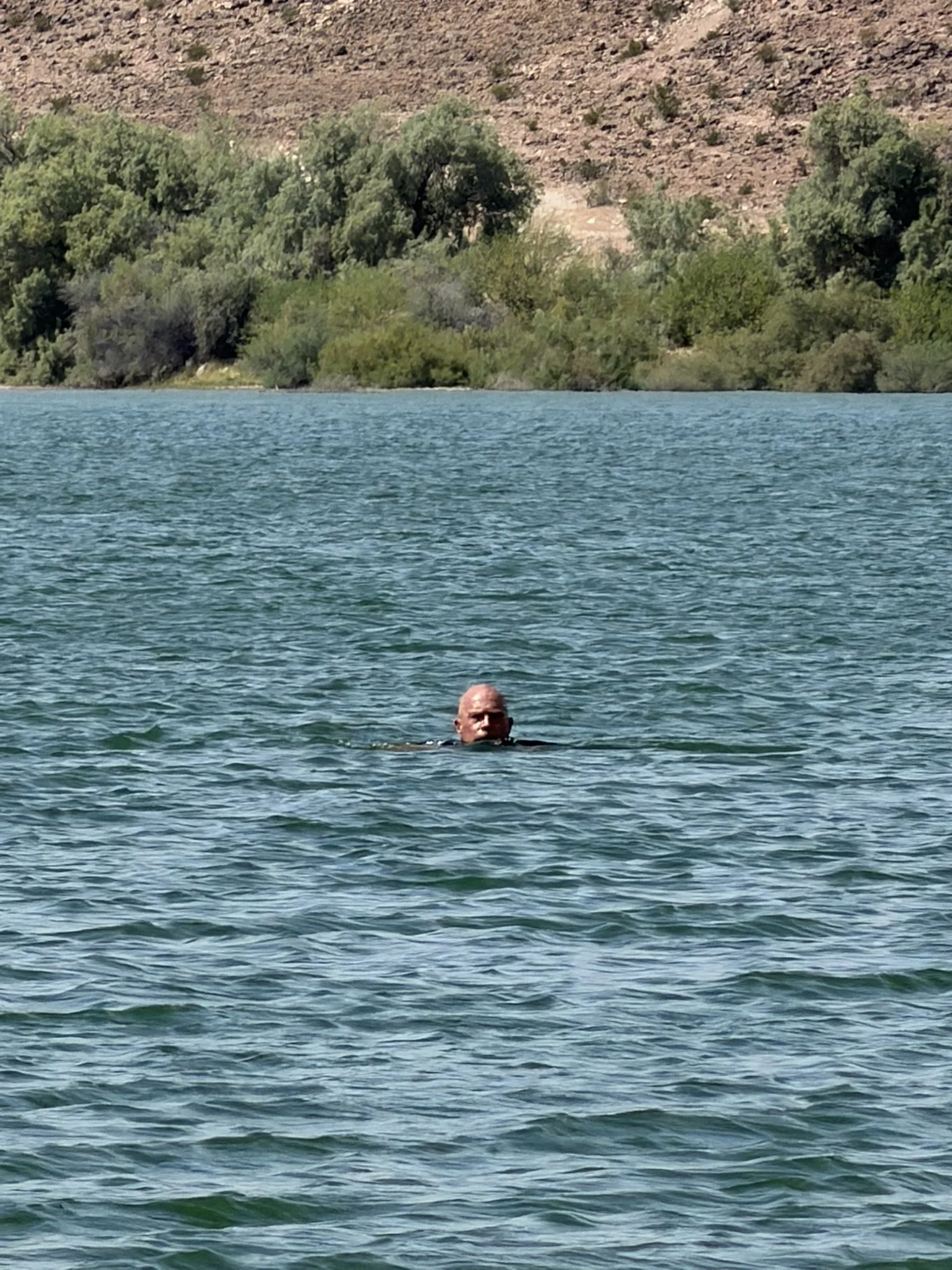 It is pretty hot here, and I worried I’d miss air conditioning and the pool at the RV resort. There is a reservoir one mile from our site here, and we can spend the afternoons sitting in the shade on the beach and swimming. It is so refreshing.